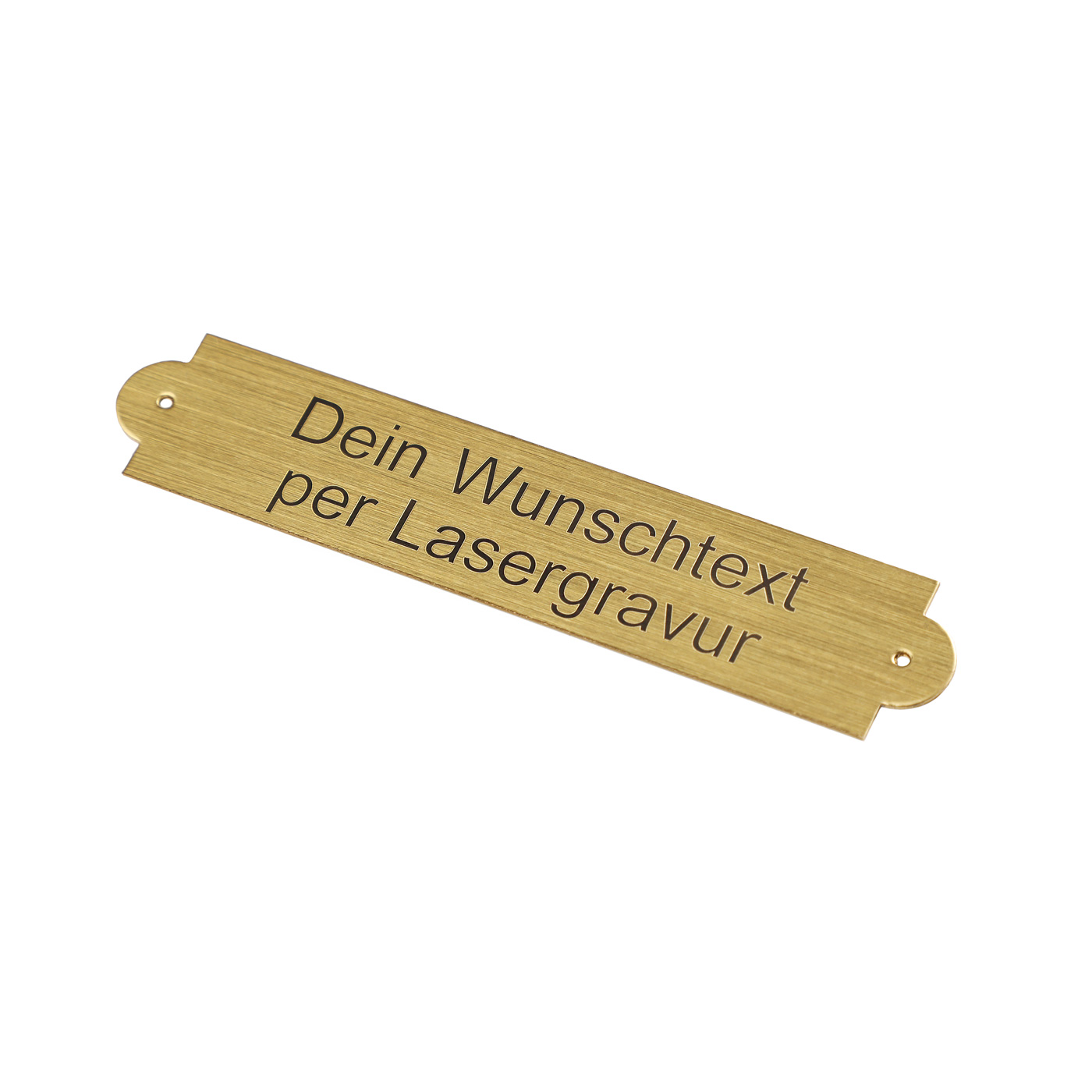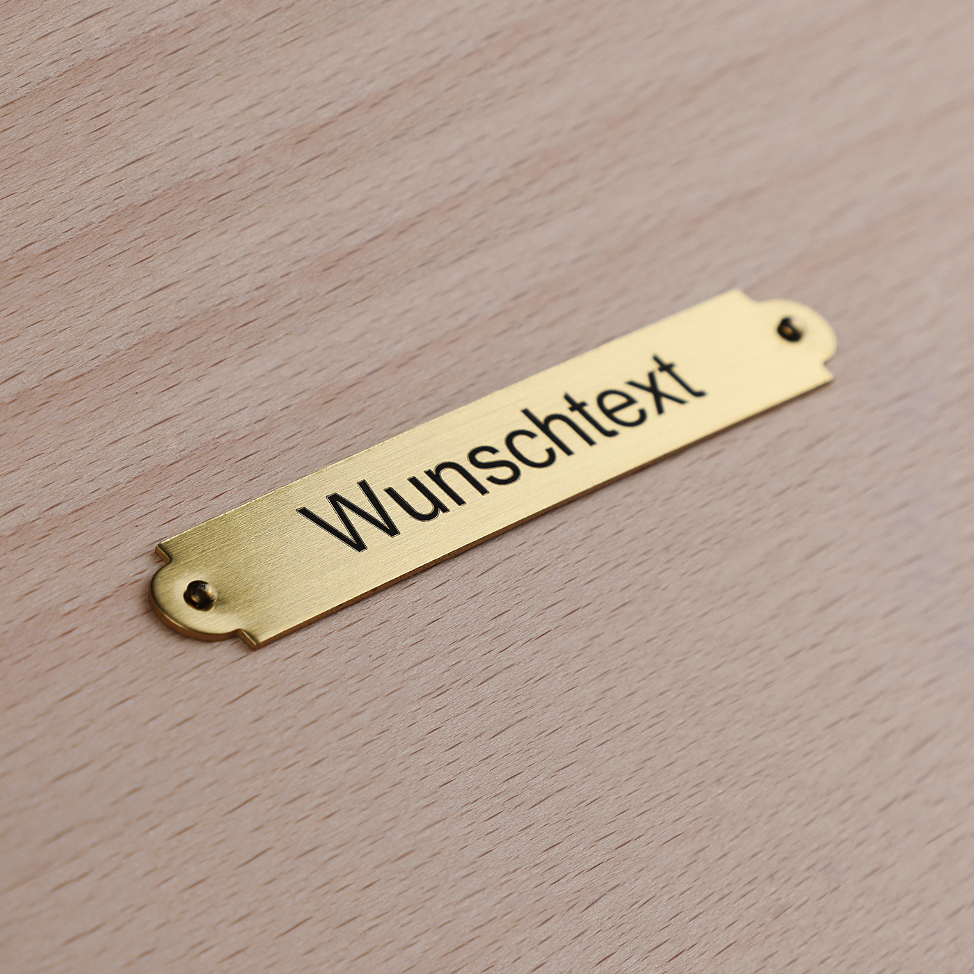 Hier kannst Du Dir Dein ganz persönliches Schild aus Messing gravieren lassen. Das sog. Gemäldeschild eignet sich hervorragend für die Beschilderung von Gemälden, Satteln oder Ehrentafeln und kann mit zwei kleinen Nägeln ganz einfach angebracht werden (Nägel nicht im Lieferumfang enthalten). Du kannst zwischen den Ausführungen „Messing“ oder „Messing silber satiniert“ wählen und Dich dabei jeweils zwischen zwei Größen entscheiden. Eine hochwertige Lackschicht verhindert die Oxidation an der Luft. Bei der Gestaltung Deines Gemäldeschilds stehen Dir verschiedene Schriftarten zur Verfügung und Du kannst auch mehrere Zeilen gravieren lassen.